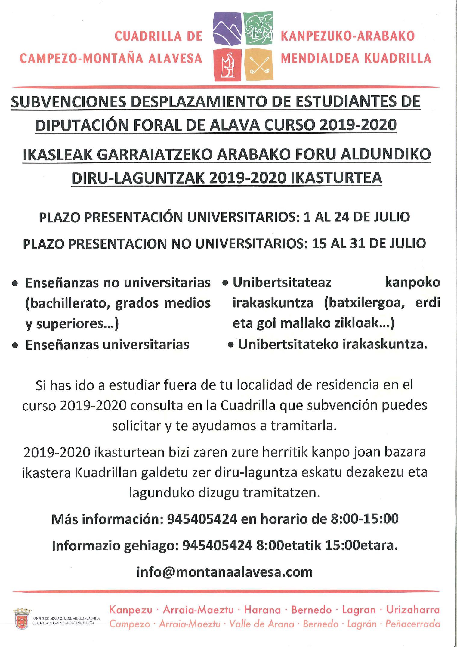 Subvenciones desplazamiento – Garraiatzeko dirulaguntzak Publicado por Mendialdea.Info | | General, Montaña Alavesa, Municipios