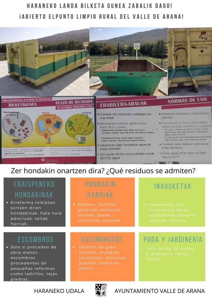 Abierto el Punto Limpio Rural del Valle de Arana Publicado por Mendialdea.Info | | Actualidad, General, Harana / Valle de Arana, Montaña Alavesa, Municipios