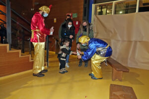 En el caso de Los Reyes se había previsto un recorrido similar, aunque la nieve caída aconsejó finalmente simplificar a un único escenario -tras la visita a la residencia- en el Frontón municipal. Cada grupo de 25 niñas y niños, convocados de forma similar, fueron entrando y colocándose en los lugares señalados para saludar a Melchor, Gaspar y Baltasar. Los magos llegaron a pedir un gran aplauso para Kanpezu por «hacer las cosas bien» en la pandemia. Los mismos pajes que recibían a las y los txikis, gel en mano, se encargaron de repartir regalos y txutxes.