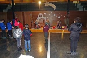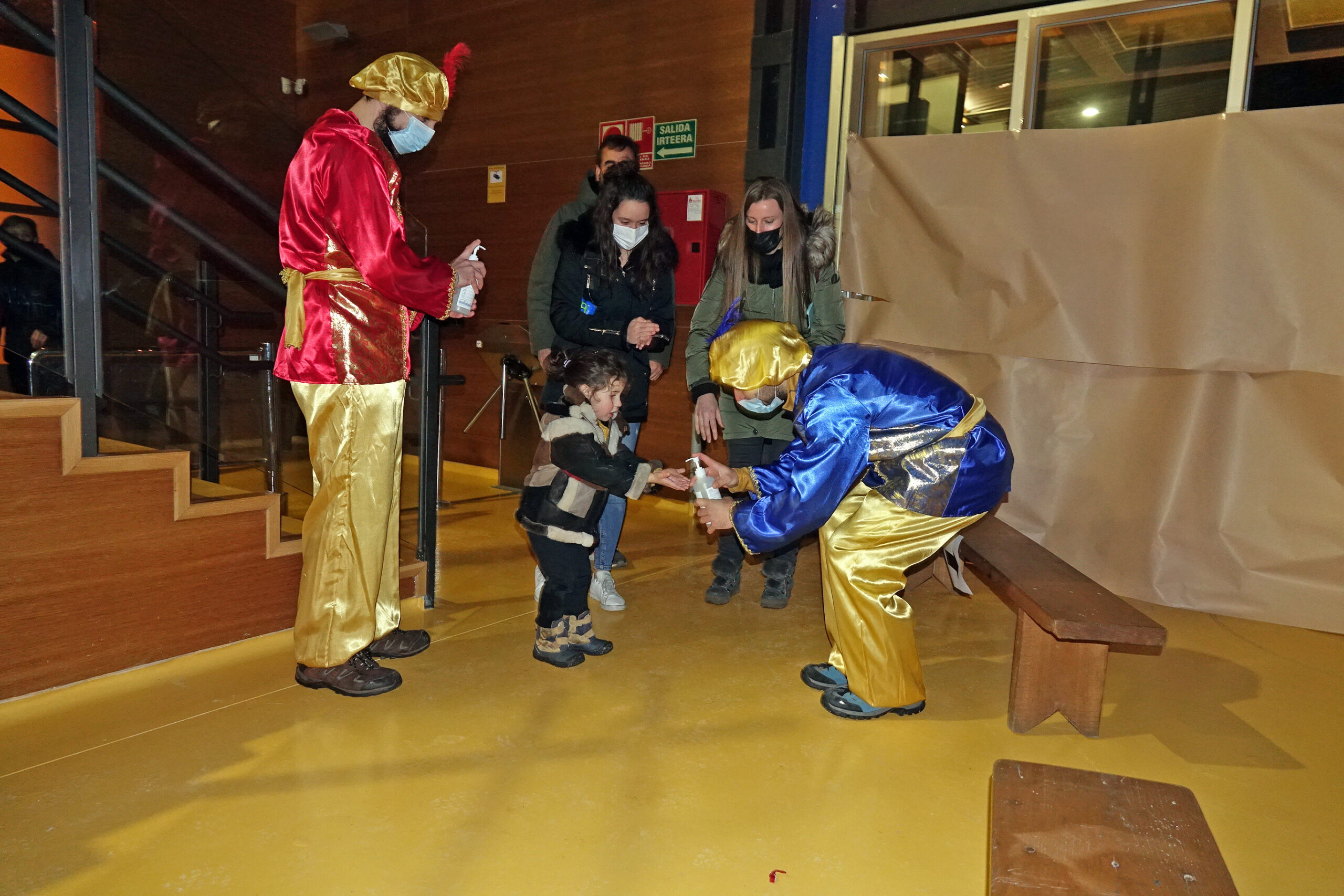 En un año normal, sendos grupos de trabajo populares en colaboración con la institución municipal hacen posible toda la logística de Olentzero y Los Reyes. Un gran recibimiento es el que se vive en torno al carbonero y Mari Domingi, que llegan desde Soñano en kalejira hasta la Plaza. Los Magos de Oriente, arrivan normalmente al frontón, después de pasar por las calles de Kanpezu. Como la COVID-19 impide celebrar actos multitudinarios, desde la concejalía de Cultura se planificaron visitas segmentadas por barrios, en el caso de Olentzero, y dada la inestabilidad del tiempo, la llegada de los Reyes al frontón, en un acto esta vez muy medido y por grupos.