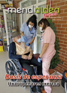 A partir de estas dos guías temáticas muchos y variados contenidos abordados en las 48 páginas de Mendialdea Press 98, que abre portada con un momento de la vacunación, donde la pandemia se cebó en su primera etapa. Ahora la Vivienda Comunitaria de Kanpezu vive un momento de tranquilidad y esperanza.