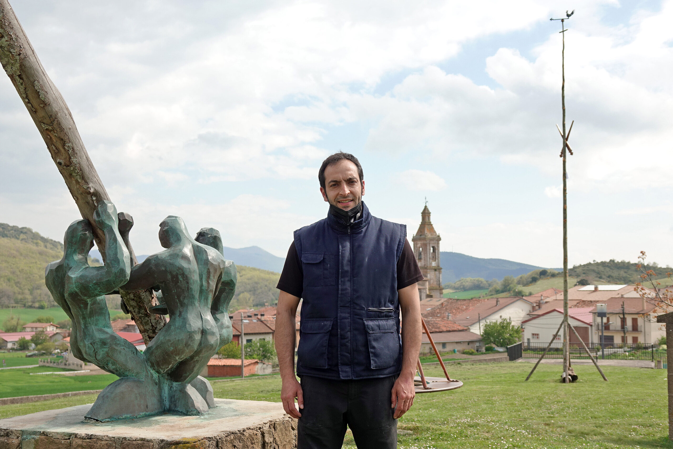 Iosu San Vicente, presidente de la Junta Administrativa, junto al Mayo que se ha levantado este mediodía.