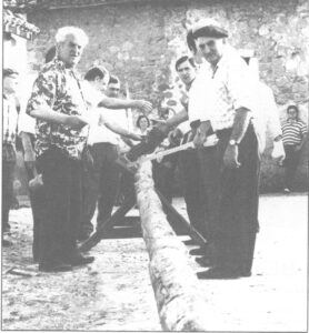 Preparando el gran tronco, con Longinos Abajo en una imagen de 1989.