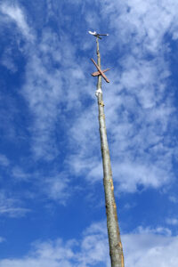 Símbolos modernos son la veleta con el gallo y la flecha colocados en la misma punta del Mayo, que indican la dirección del viento. También en la parte baja se colocan las cintas de las 7 Cuadrillas de Alava, «pero esto se ha suprimido también este año porque no tiene sentido si no hay música ni gente en su colocación, también el canto del Tente nublo… hemos hecho un poco lo básico».