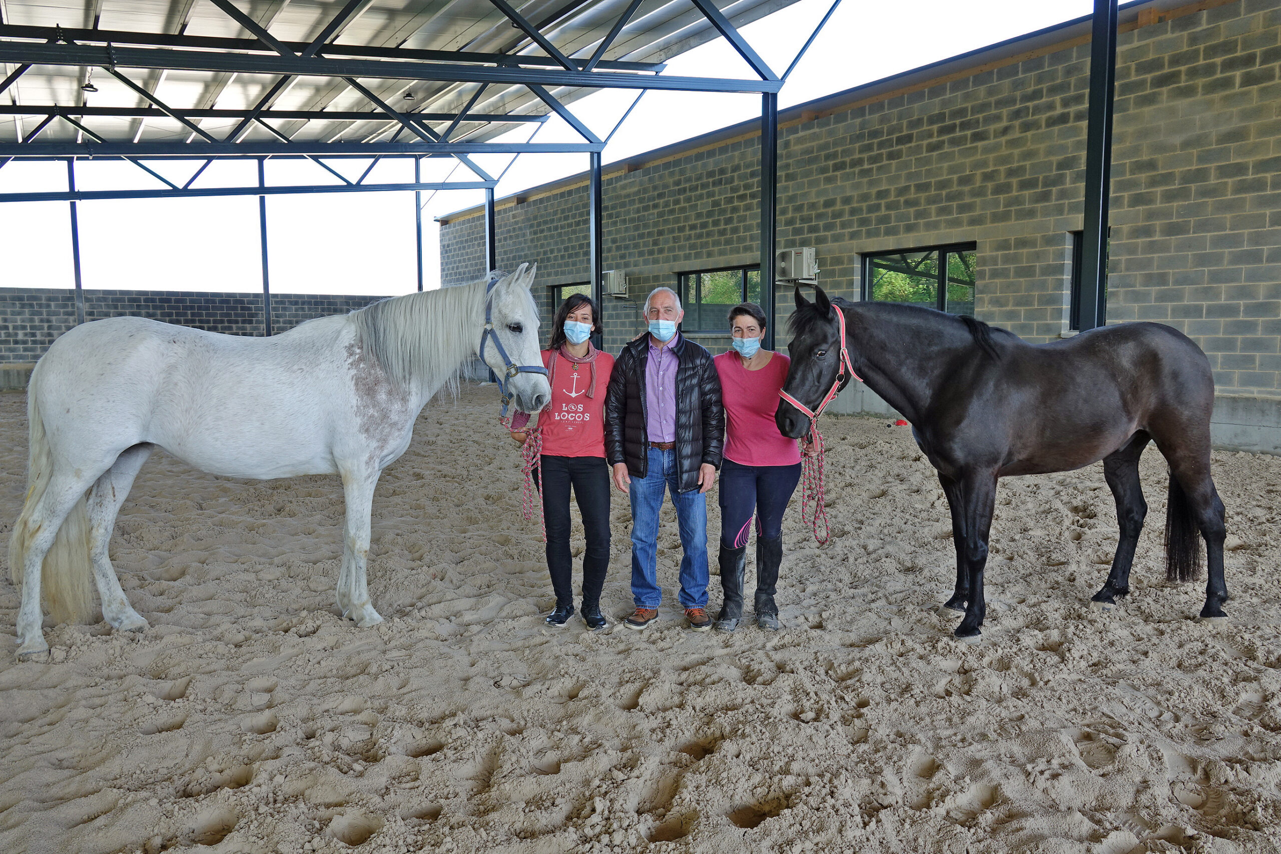 Son nuevas las instalaciones y también la gestión por cinco años que acaba de firmar con el Ayuntamiento de Harana la asociación sin ánimo de lucro Arikitemo que representa Díaz de Cerio. Pero Zaldiharana no tiene reapertura «sino continuidad. Llevamos desde marzo de 2006 haciendo terapias con caballos en Alava y en Harana una década», recordaba el formador ecuestre antes de iniciar el recorrido por el nuevo centro. Aquí se han traído los diez caballos con los que se imparten las sesiones de hipoterapia, que descansaban hasta hace poco en las cuadras habilitadas en un pabellón industrial cercano. Desde ese lugar se han impartido las terapias en las que participan actualmente 22 familias.