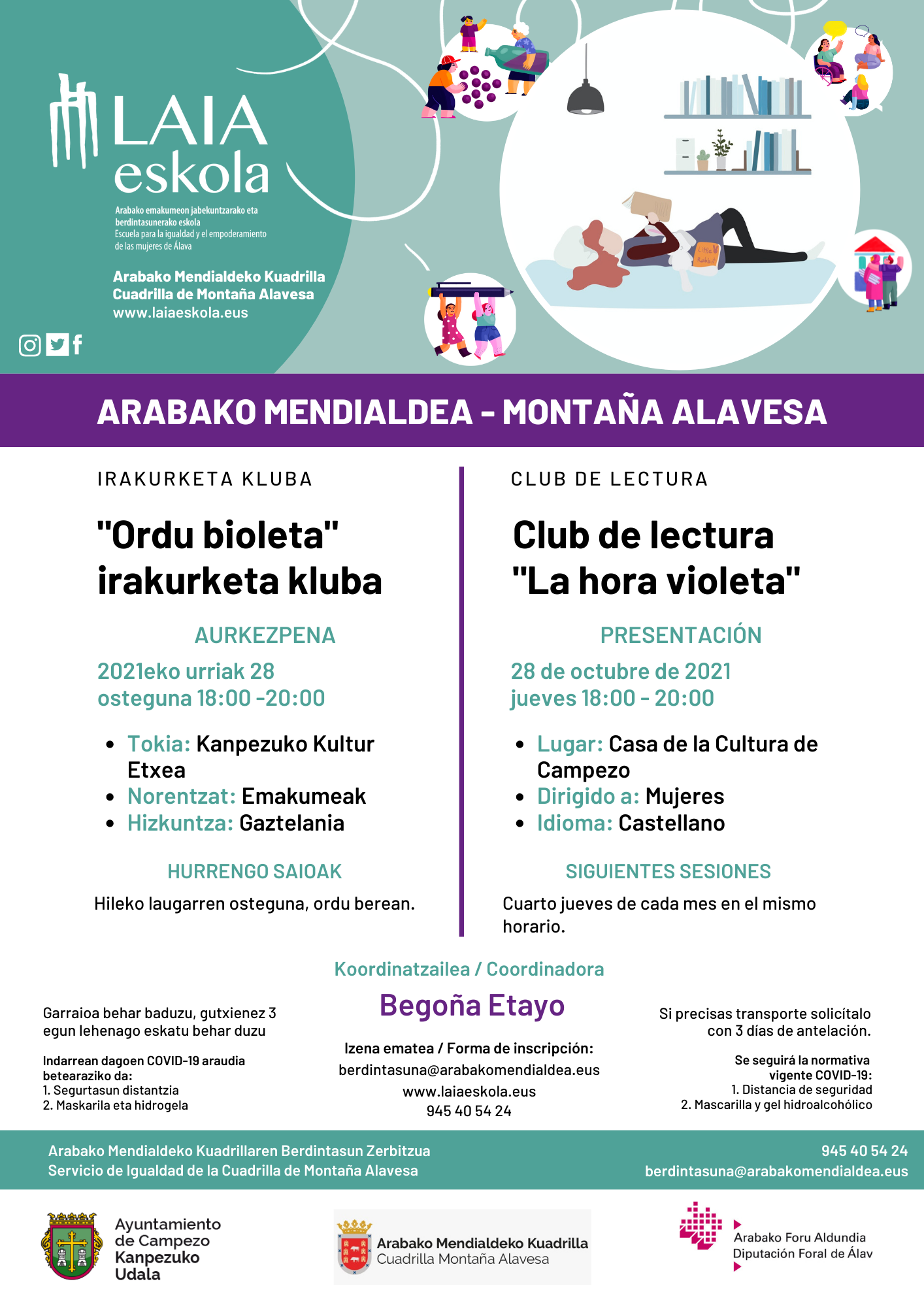 Presentación-Aurkezpena: Club de lectura «La hora violeta» (Santa Cruz de Campezo, urriak 28 de octubre) Publicado por Mendialdea.Info | | Actualidad, Campezo / Kanpezu, General, Montaña Alavesa, Municipios