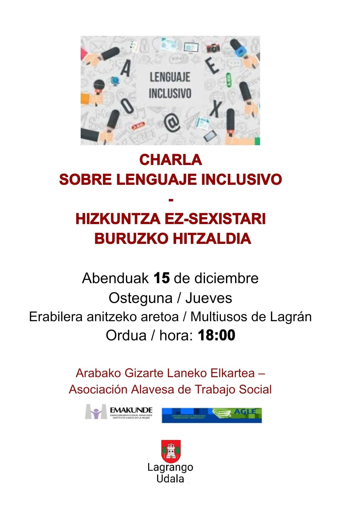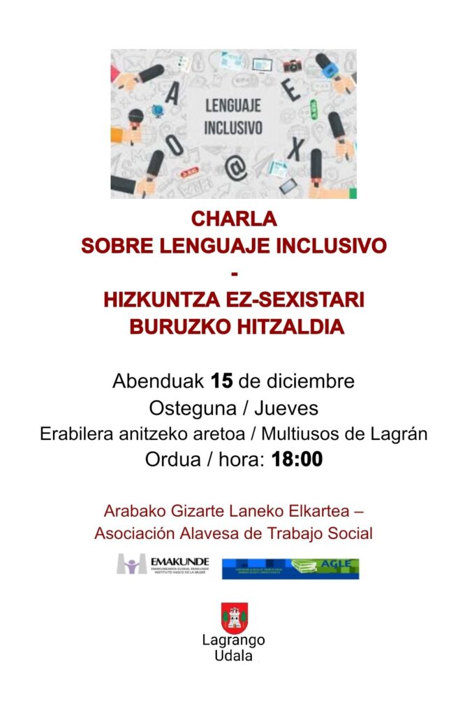 Charla sobre lenguaje inclusivo. Hizkuntza ez-sexistari burusko hitzaldia (Lagrán, abenduak 15 de diciembre) Publicado por Mendialdea.Info | | Actualidad, General, Lagrán, Montaña Alavesa, Municipios