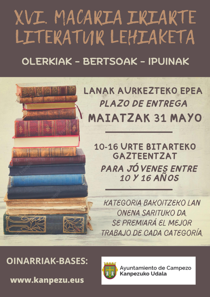 XVI Concurso Literario Macaria Iriarte Literatur Lehiaketa Publicado por Mendialdea.Info | | Actualidad, Campezo / Kanpezu, General, Montaña Alavesa, Municipios BASES OINARRIAK