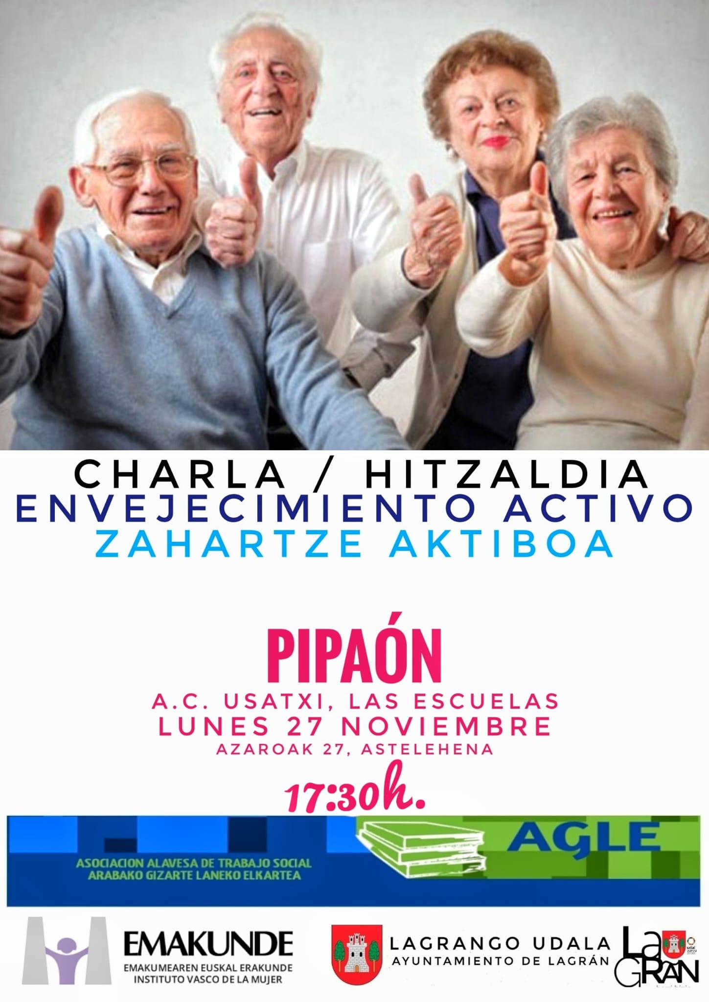 Charla/Hitzaldia: Envejecimiento activo. Zahartze aktiboa (Pipaón, azaroak 27 de noviembre).