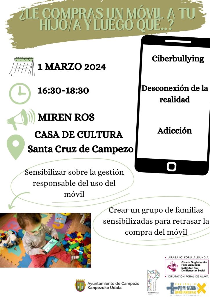 ¿Le comprarías un móvil a tu hijo/a y luego qué…? (Kanpezuko Kultur Etxea, martxoak 1 de marzo) Publicado por Mendialdea.Info | | Actualidad, Campezo / Kanpezu, General, Montaña Alavesa, Municipios