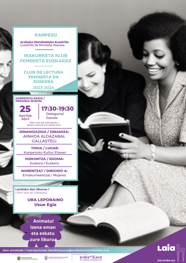Irakurketa Klub feminista euskaraz (Kanpezuko Kultur Etxea, apirilak 25 de abril). Publicado por Mendialdea.Info | | Actualidad, Campezo / Kanpezu, General, Montaña Alavesa, Municipios