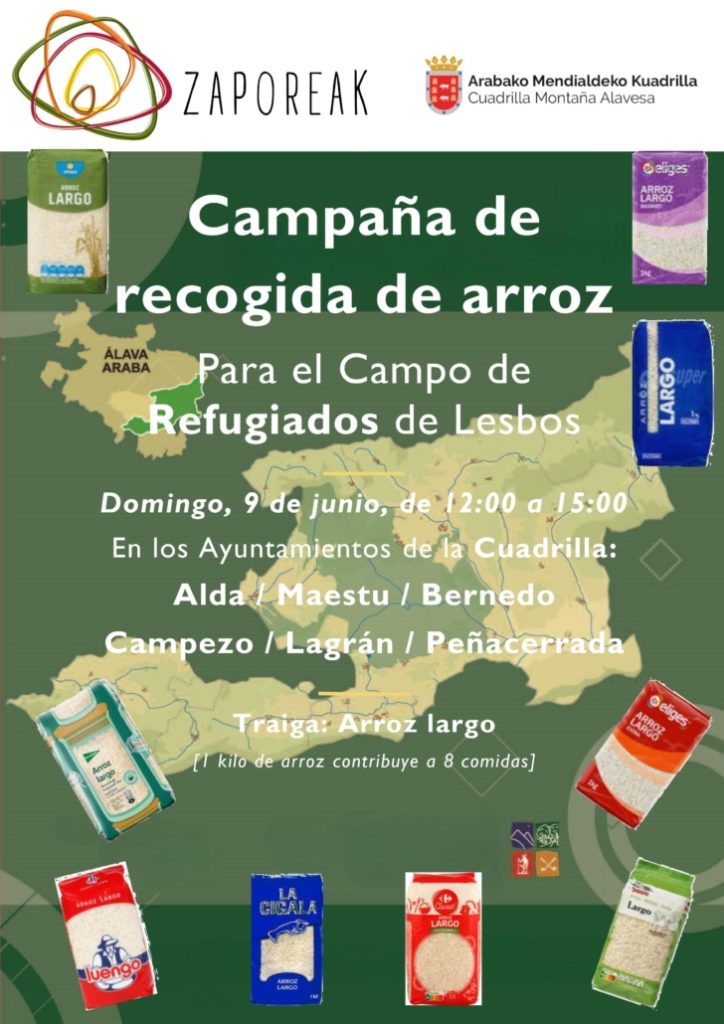 Campaña de recogida de arroz para el campo de refugiados de Lesbos Publicado por Mendialdea.Info | | Actualidad, General, Montaña Alavesa, Municipios