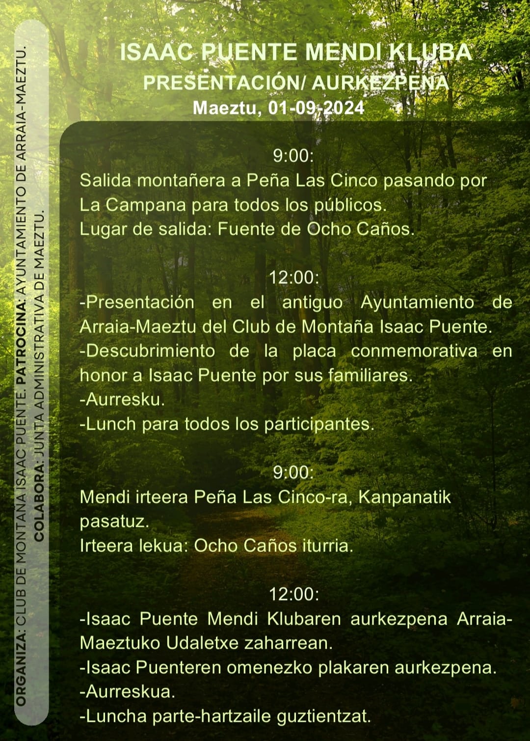 Aurkezpena-Presentación: Isaac Puente Mendi Kluba ( Maeztu, irailak 1 de septiembre).