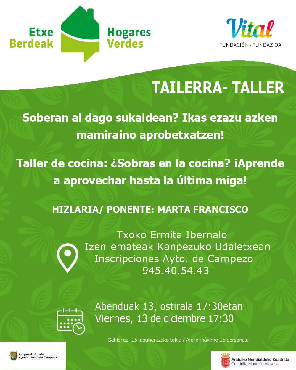 Tailerra/Taller: ¿Sobras en la cocina? ¡Aprende a aprovechar hasta la última miga! (Ibernalo, abenduak 13 de diciembre). Publicado por Mendialdea.Info | | Actualidad, Campezo / Kanpezu, General, Montaña Alavesa, Municipios