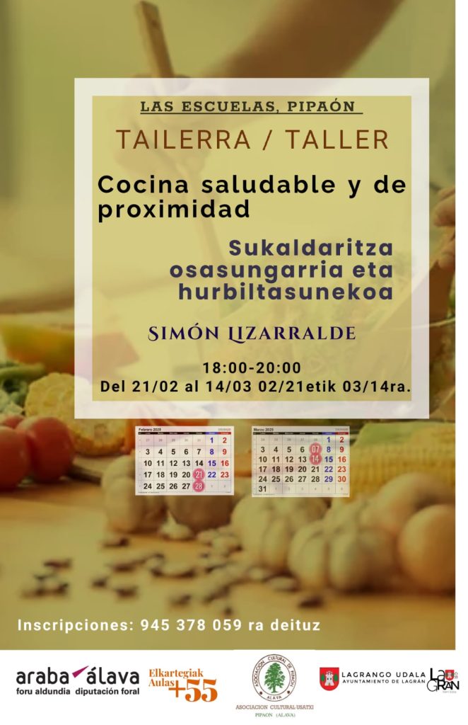 Tailerra/Taller: Cocina saludable y de proximidad (Pipaon, otsailak 21,28 de febrero, martxoak 7,14 de marzo).) Publicado por Mendialdea.Info | | Actualidad, General, Lagrán, Montaña Alavesa, Municipios