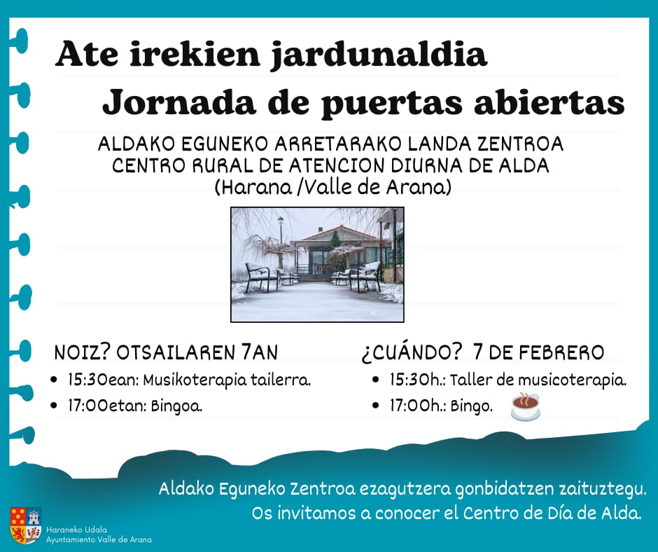 Jornada de puertas abiertas (CRAD Alda, otsailak 7 de febrero). Publicado por Mendialdea.Info | | Actualidad, General, Harana / Valle de Arana, Montaña Alavesa, Municipios